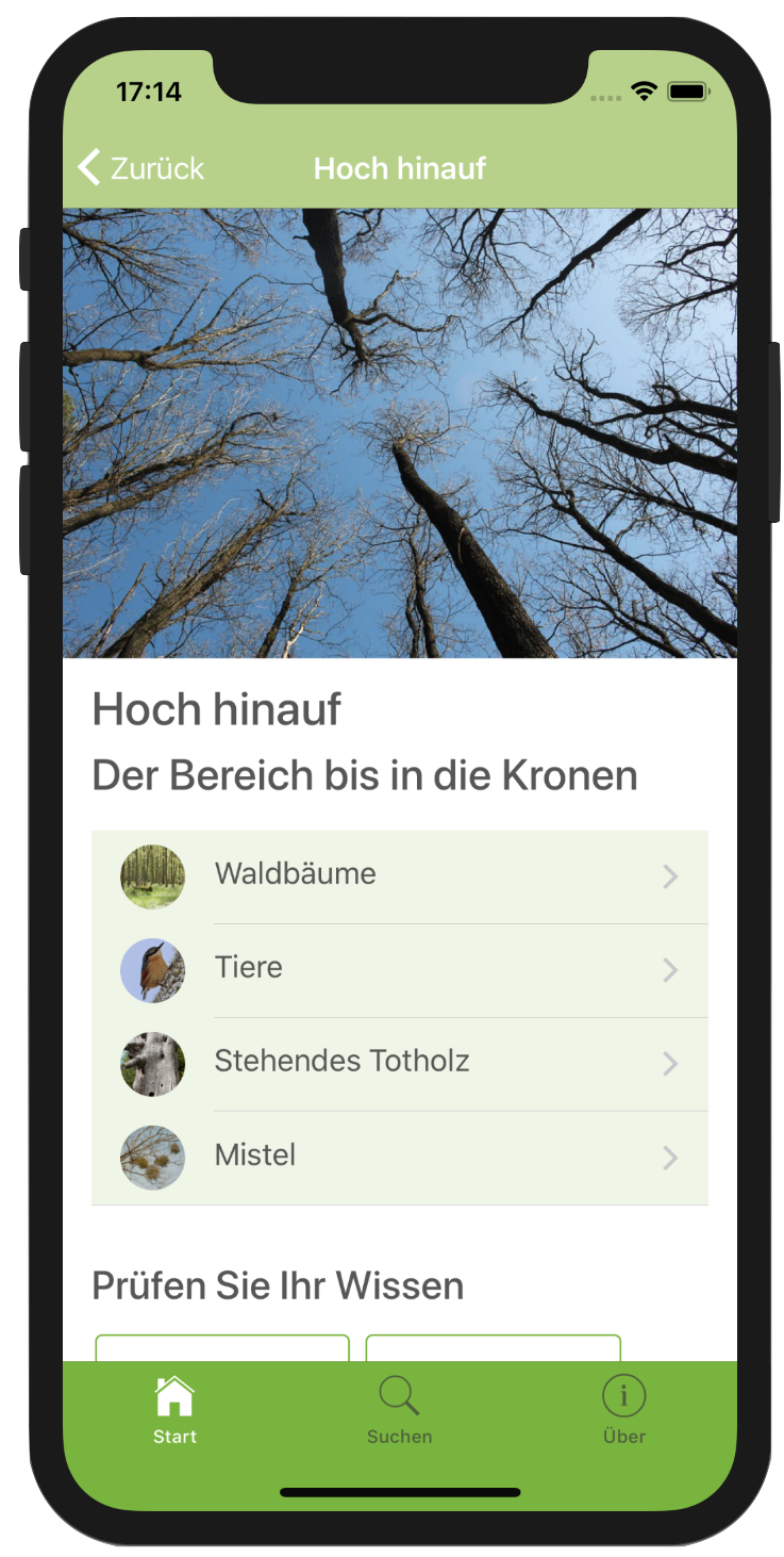 Der Fragenteil gibt die Möglichkeit, das eigene Verständnis zu überprüfen und regt zur Auseinandersetzung an. Ganz konkrete Punkte oder Anfragen können in der WaldApp über die Suchfunktion gefunden und geklärt werden.