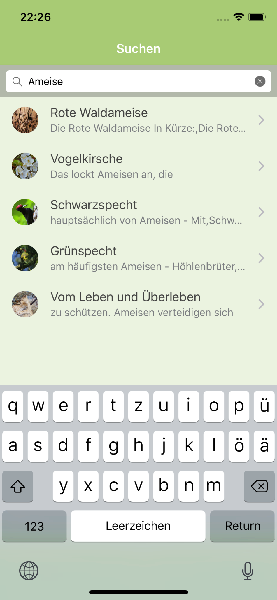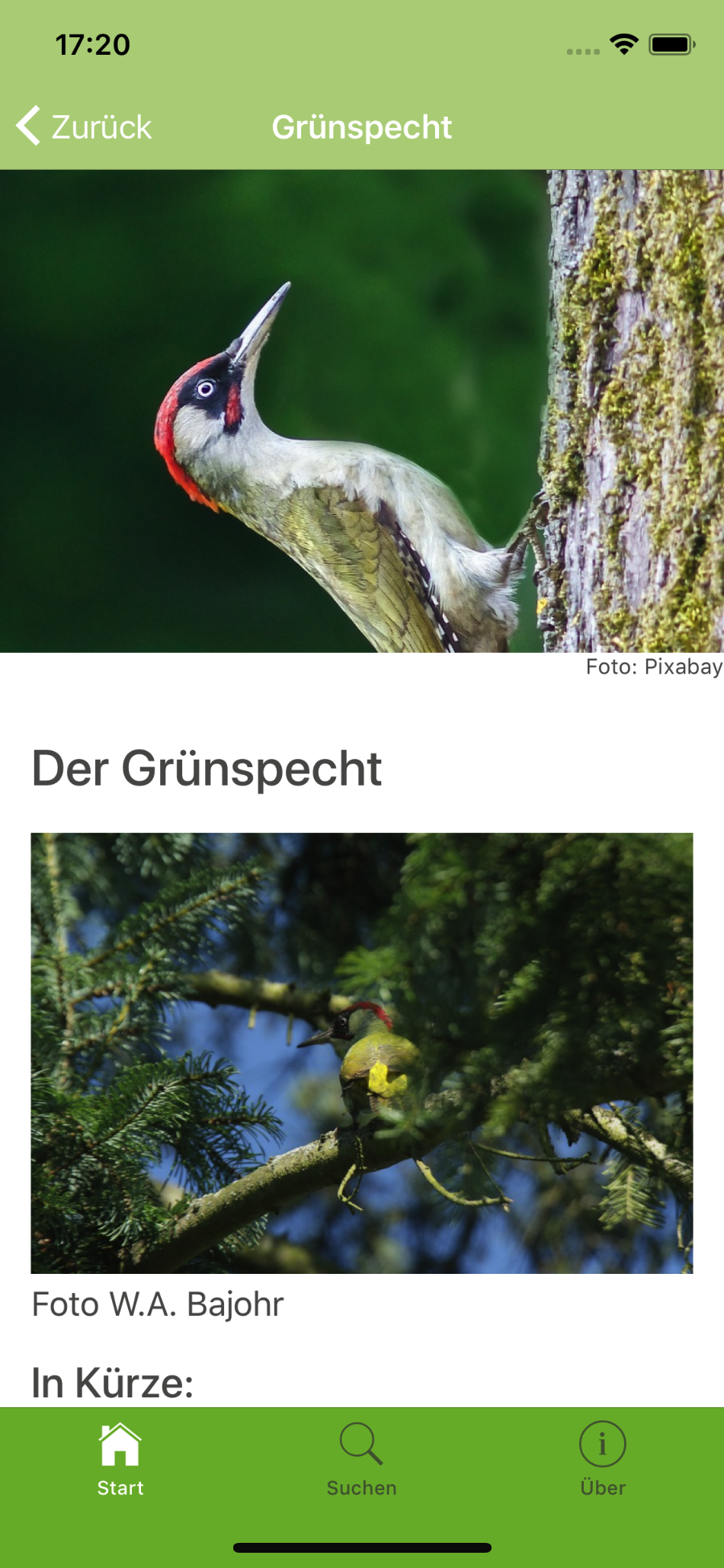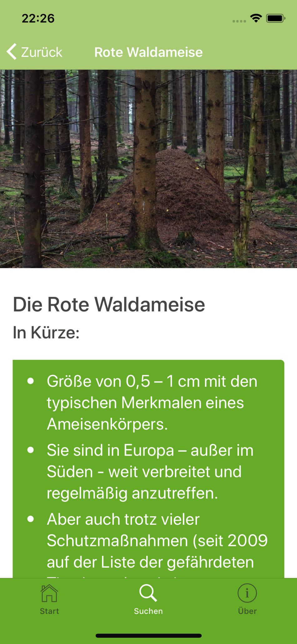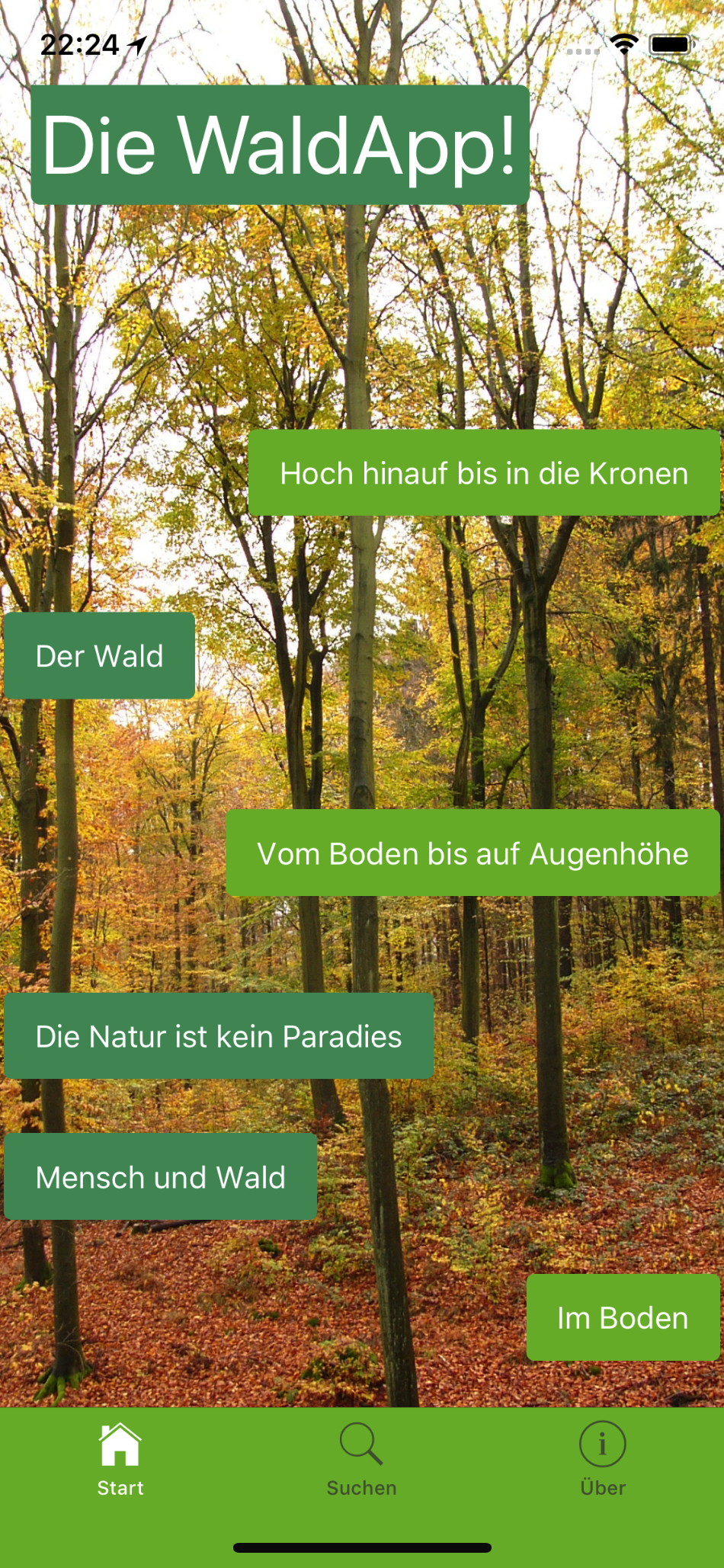 Hier noch ein paar Bildschirmfotos der WaldApp: